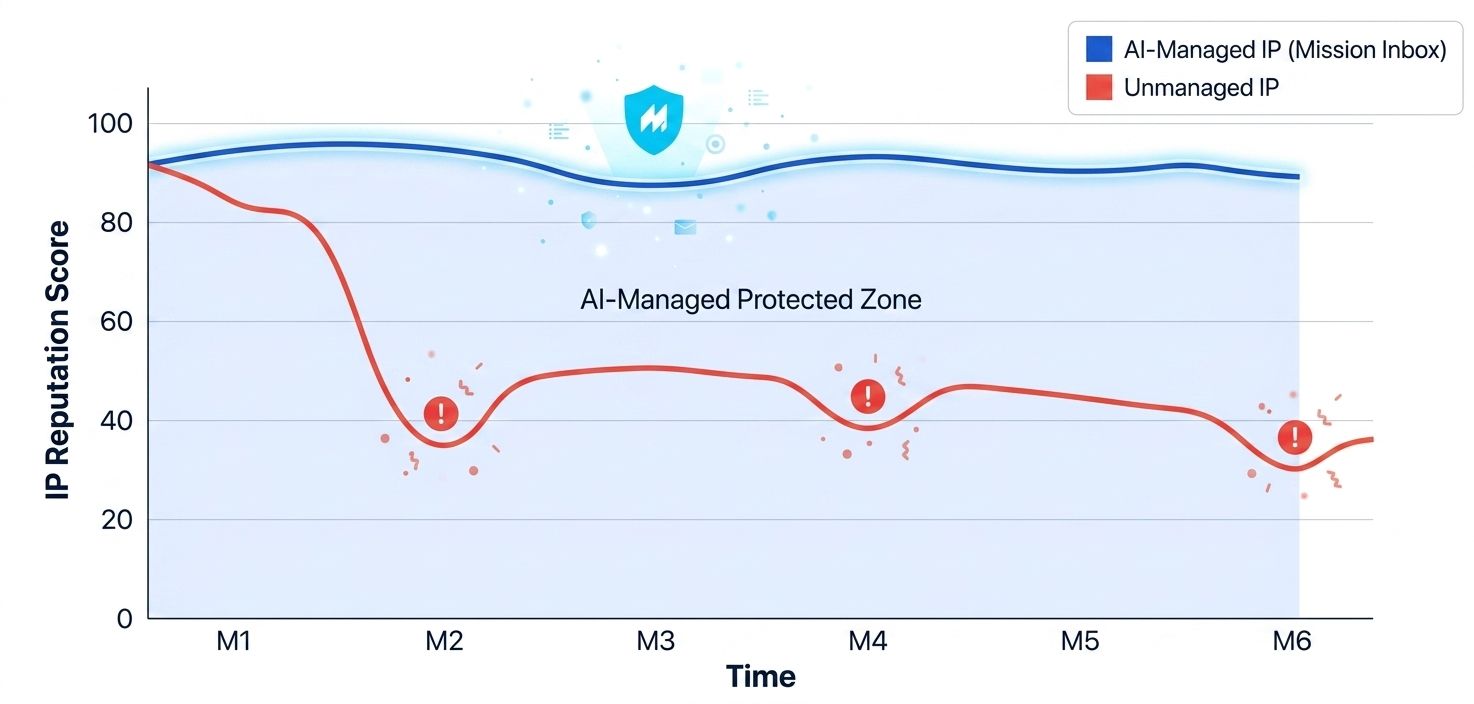 At Mission Inbox, our AI layers monitor the health of your dedicated environment in real-time. The system learns the "normal" behavior of your IP and flags deviations before they result in a block. By combining isolated hardware with intelligent software, you get a sending environment that is both exclusive and self-healing.