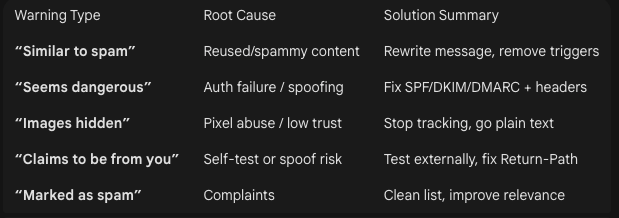 - The Root Cause: Reused or "spammy" content, often triggered by recycled cold email copy or generic lead scraping tools.