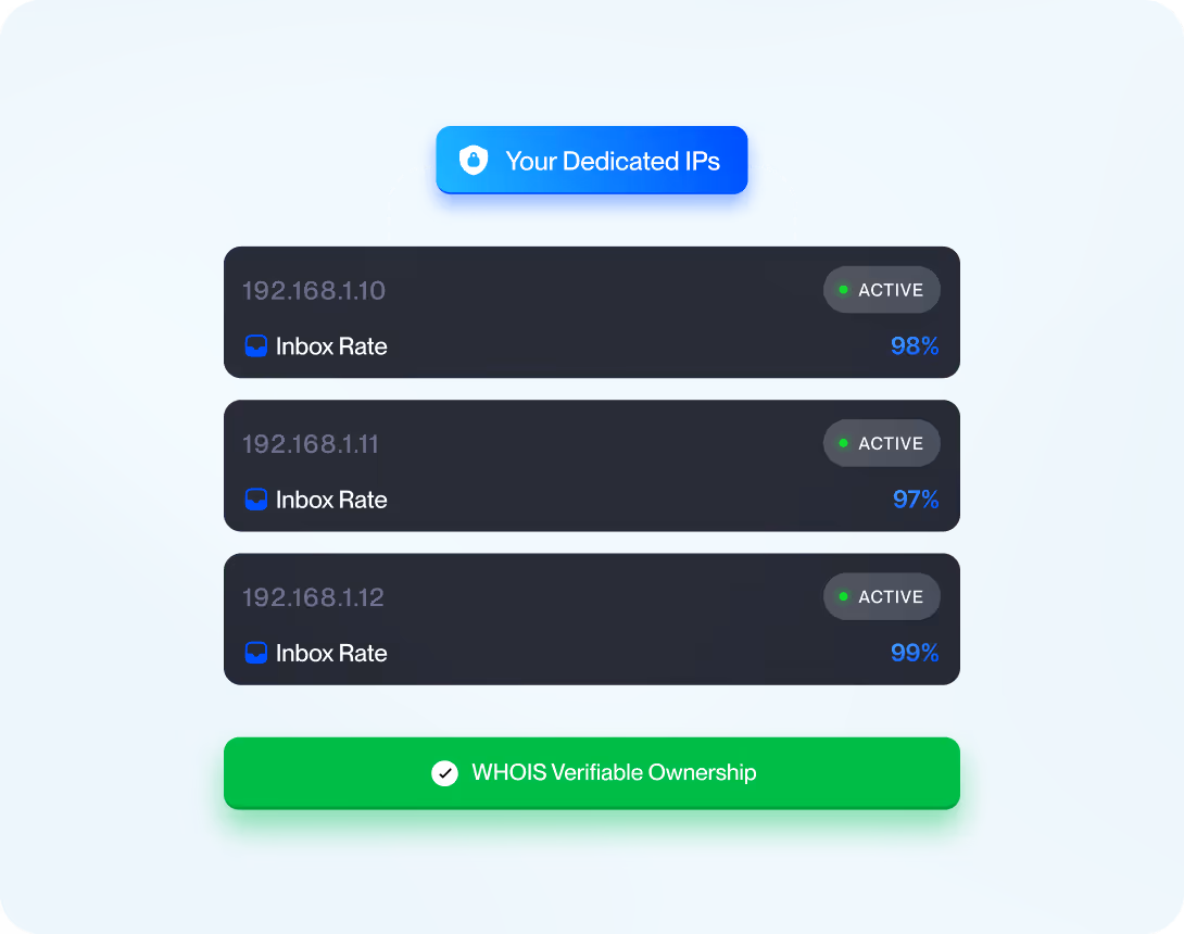 No surprises caused by other customers. Your deliverability is consistent, measurable, and entirely under your control.